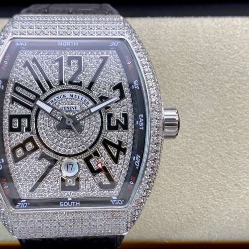 ABF廠最高版本Franck Muller 高仿法穆蘭/法蘭克 Vanguard V45 滿天星ETA2824機芯45MM複刻手錶 V2版 突破升級 1. 以原裝殼套1:1 開模 45mm*14mm 鑲鑽升級採用全進口斯華洛斯奇水晶石 與真正鑽石在50倍放大鏡下相差無幾 臺面更寬 更加閃耀 表殼與字面鑲鑽線條完美橫豎對稱 升級V2版 2.字面日曆窗與原版一致 放置了放大鏡 與市面低配版本最大區別!3.錶針首先採用五彩金剛砂極限細緻拉砂後在真空電槍色 針頭壓彎 與原版弧度100%一致 更好貼合字面弧度 4.表扣 採用原版開模 與原裝V45滿天星一致的鑲鑽針扣表扣 更加方便佩戴 最大限度還原原版 5. 搭配高頻率振幅 28800的ETA2824機芯 走時精准 品質穩定 緊貼手腕的弧形表殼設計 6.升級版鋼頭曆高級橡膠錶帶 更加柔軟舒適 市場唯一版本 可以用於原裝表的錶帶 升級V2版V45 滿天星 歡迎您的品鑒!N廠 勞力士 N廠手錶 高仿手錶 仿錶 複刻錶 一比一複刻手錶