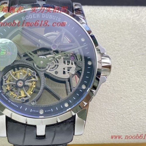 JB罗杰杜彼EXCALIBUR王者系列RDDBEX0260(RDDBEX0393的运动版本,45mm直径,保险盖护桥巴蒂),复刻史上最乱真的镂空陀飞轮腕表。在真陀飞轮机芯的基础上同步原版RD505SQ一体陀飞轮机芯所有架构,和原装一样飞轮摆轮上有砝码螺丝钉,镂空剑型指针,机芯主体相似度达到98%,和原装一样的保险盖把头+新款封闭式折叠扣,机芯构架没有少一个零件也没有多一个齿轮,具体细节可以参考腕表之家官网图,蓝宝石防刮镜面,原装折叠扣。腕表整体霸气大方又潮流炫酷,逼格满满,型男高富帅必备,人见人爱。