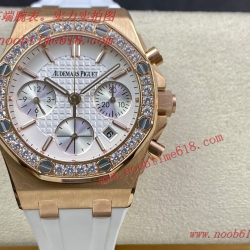 仿錶,26231機械計時女表AP愛彼Audemars Piguet 皇家橡樹女款多功能計時機械腕表 專櫃尺寸37mm【圈口】圈口採用進口鑽石原裝鑲嵌手法【把頭】表冠採用六邊形精鋼材質,頂端採用拉絲打磨技術【機芯】7750改原裝機芯 6字位小秒 功能與原裝一致【表鏡】表鏡選用進口藍寶石玻璃鏡面【表殼】採用進口316精鋼表殼 【錶帶】搭配進口開模氟橡膠錶帶【表扣】原裝折疊扣【頭粒】頭粒設計與專櫃一致可以微調 佩戴更佳貼手舒適 女神必備 經過多道工序的打磨和磨砂處理,終把AP特有的八角型表圈表達出棱角分明的線條