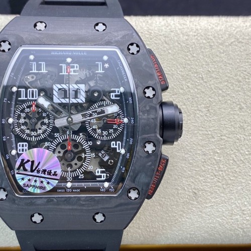 KV廠升級版理查德米爾RM011系列計時機芯複刻手錶手表 爆款.RM11絕對是讓人耳目一新的一款傑作!1:表殼運用與正品一致的NTPT碳纖維特別材科!由多層平行細絲構成,細絲則由碳纖維分離到這些厚度然後經過特殊機器織成,升級了正品一樣的碳纖紋路 2:字面由最頂尖的玻璃廠依原版原理製成30C厚厚的玻璃,然後打好吼和印刷。這樣製作使整片字面更通度以及幹潔無絲毫瑕疵3日曆由機芯廠私人定制下複刻出與原版一致的功能與原理,重點在於與正品一致的雙曆單獨跳曆的功能,日曆結構與數字結構與正品一致4:底蓋由前緣超聲波雕刻而成,達到與正品一致的立體效果,且每只表的底蓋都有獨立編碼5:玻璃使用高通透度鍍藍光水晶玻璃6:膠帶用馬來西亞頂級橡膠材料製作而成,?帶做到了與正品RM-011通用的成果。 N廠 勞力士 N廠手錶 高仿手錶 仿表 複刻表 一比一複刻手錶
