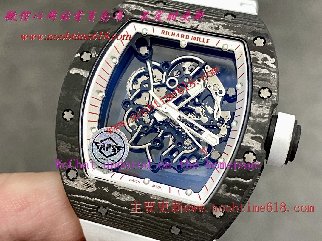 A貨仿錶,APS工厂理查德RM055仿錶,少量到货市面上最高版本,里查德以其轻便时尚为主题,我们所有的金属件都采用钛金属制作同步原版(看见的看不见的金属配件全是钛),作为亿万富豪的入场券,我们采用丹东定制一体机芯RMUL2,目前市面上最高版本的机芯,表壳,表带以及所有配件