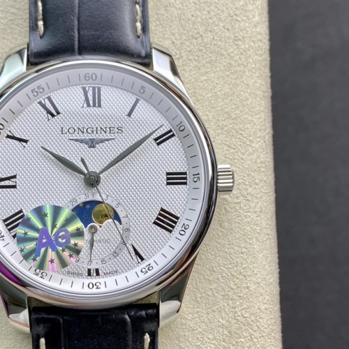 AG廠高仿浪琴月相名匠系列L2.909.4.78.3定制版L899機芯複刻手錶 攻克機芯障礙,??修正市面調日曆倒跳日曆的弊端,單調日曆正跳,月相一個月轉一圈,小盤的月相凹凸做工加反光效果更接近原裝。?