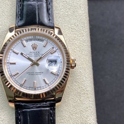 高仿勞力士最經典的星期日志系列36mm複刻手錶 ,V3升級版,除了DD沒有之一!難得的皮帶款,勞力士Day-Date系列118135/118138/118139 【八色全齊】!為控制尺寸與厚度呈官方一致,特採用搭載2836-2全自動機械機芯,全新904L鋼殼呈現![升級1]頭粒.與官方一致位置突出且配合錶帶圓滑收尾![升級2]錶帶.正面原色以正品調配,反面編碼346763印字官方一致,連同字體到顏色,甚至到錶帶線條同步官方![升級3]玻璃.藍寶石玻璃上防偽標誌logo為勞力士新型虛點標識且通過技術內印於玻璃中間。[升級4]後蓋.四個角度表耳印字與原裝一致,注重到白殼與金殼,玫瑰金殼印字均不同!連同後蓋拉沙與光滑部分均注重還原![升級5]側身:表殼側身弧度與總體厚度均與官方成比例,把頭官方同步二度防水標誌,側面仍然與官方一致貼有二維碼!“金勞”的代表也就是勞力士Day-Date,簡稱DD,官方全名叫做Osyter Perpetual Day-Date(蠔式恒動星期日志型),最早的DD應該是President系列,因為美國總統曾經酷愛佩戴Rolex的全金DD,所以後來此表一舉成名,也是我們所說的“總統表”。簡單的四個單詞,已經把這枚腕表的特點給說得清清楚楚,防水、自動、日曆、星期。少量到貨,入手從速! N廠,N廠手錶,高仿勞力士,高仿手錶,精仿手錶,仿表,複刻手錶,複刻表,一比一複刻手錶